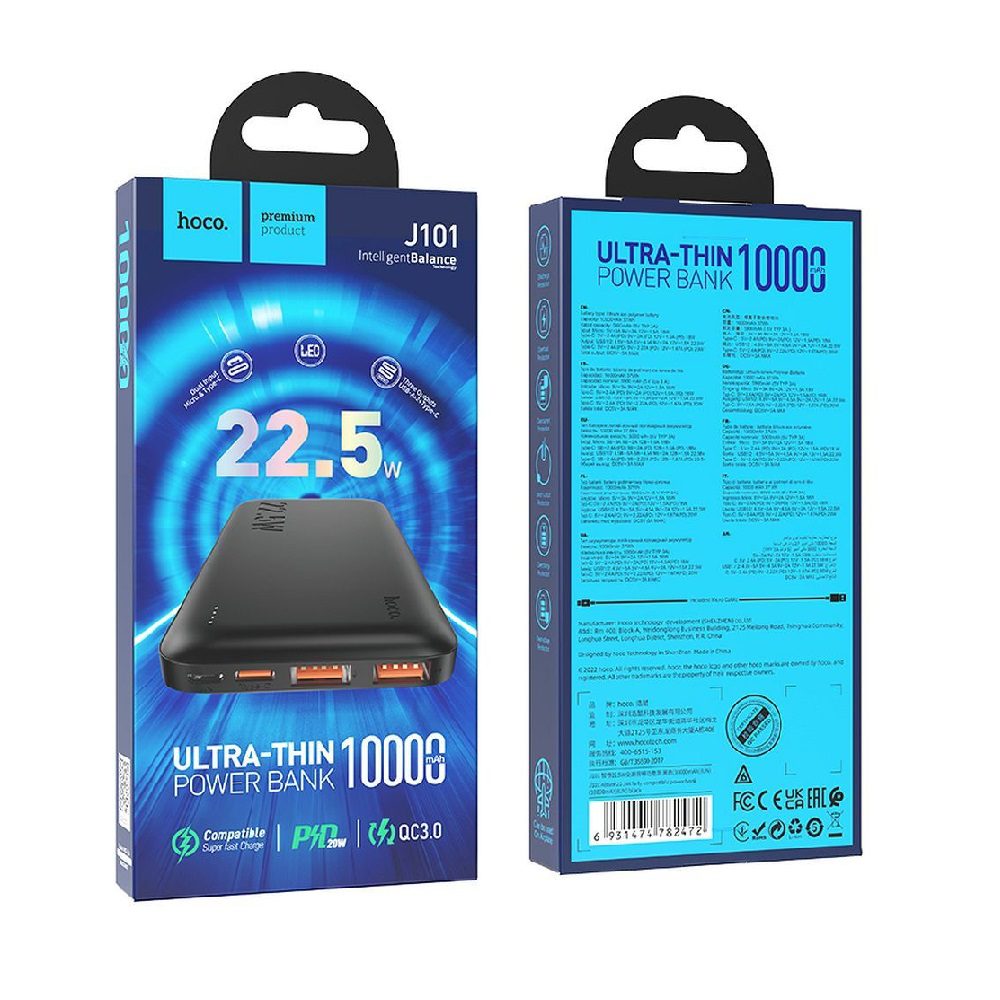 POWERBANK HOCO J101 QC PD 3A 22,5W 10000mAh  – ΜΑΥΡΟ